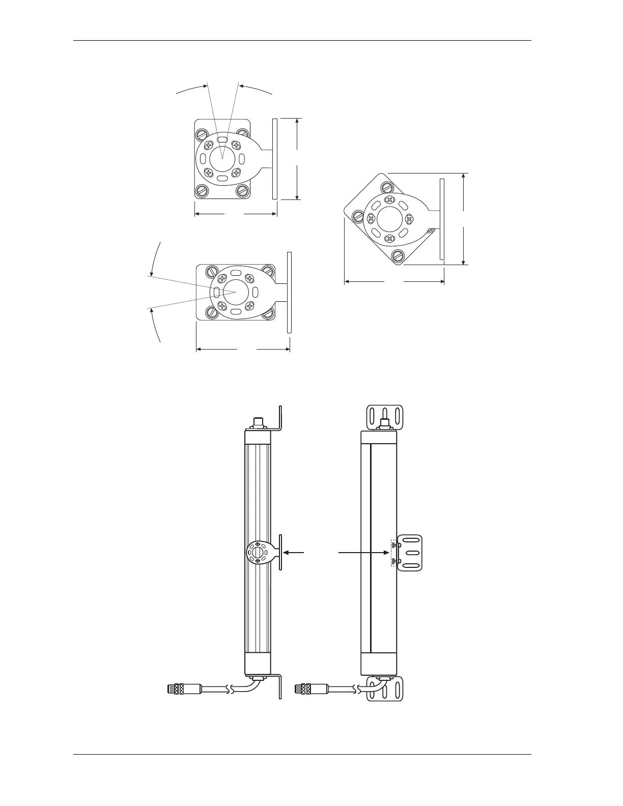 Figure 2-7. Shadow 8 Universal Mounting Brackets: Dimensions and Rotation (Top View)