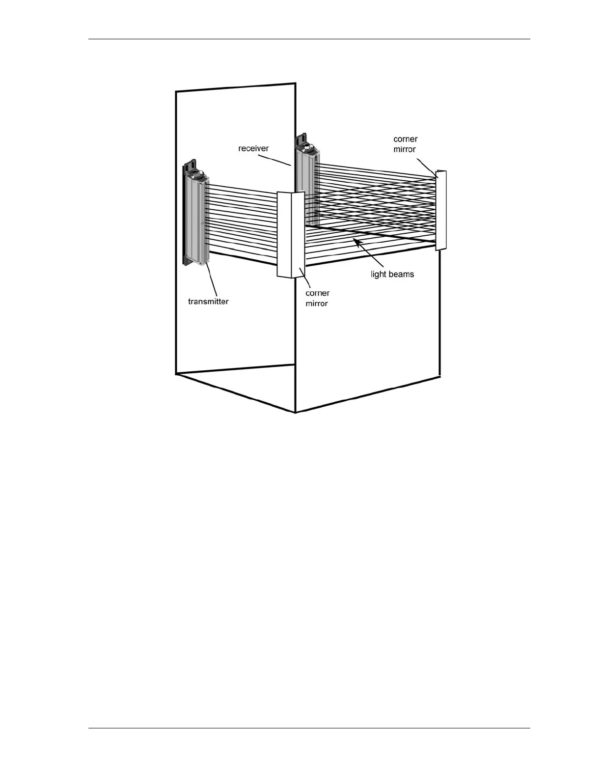 The Shadow 8 light curtains and mirrors do not have to be arranged in a rectangle as shown in