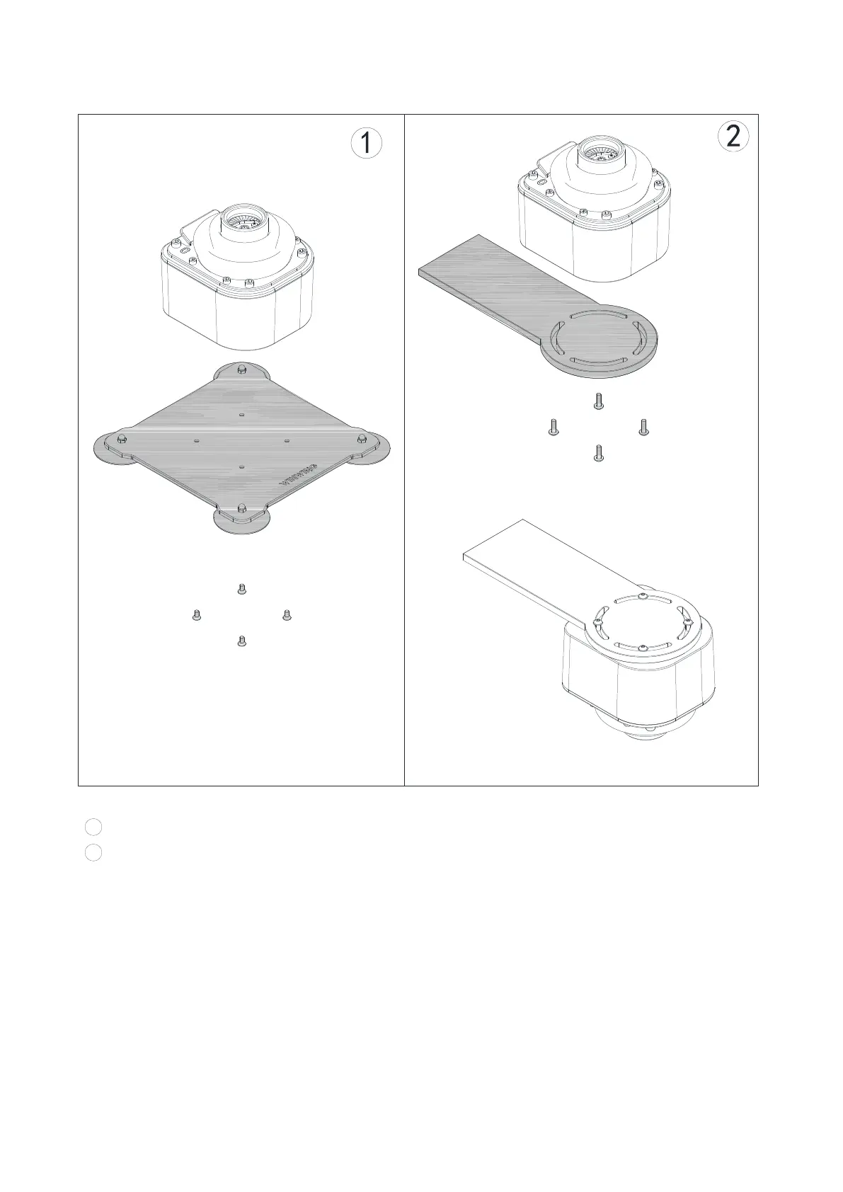 2 Put the BASE on the mount, then install screws and spacers (prepared by yourself)from