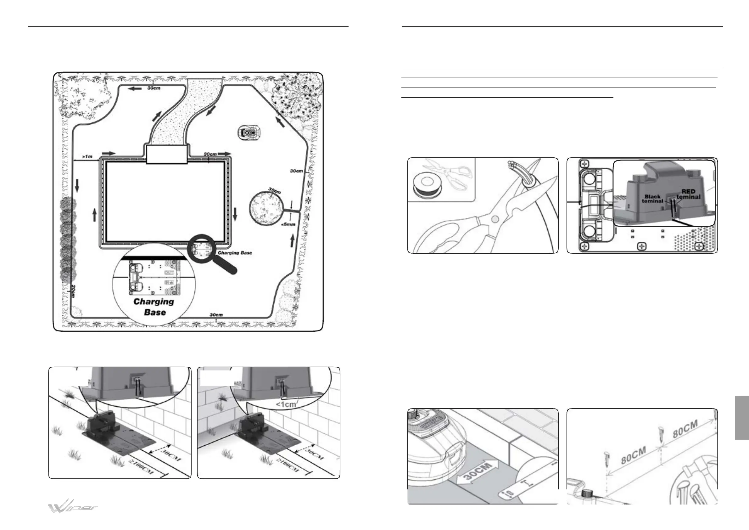 UWAGA: Przewód graniczny przed bazą ładującą powinien