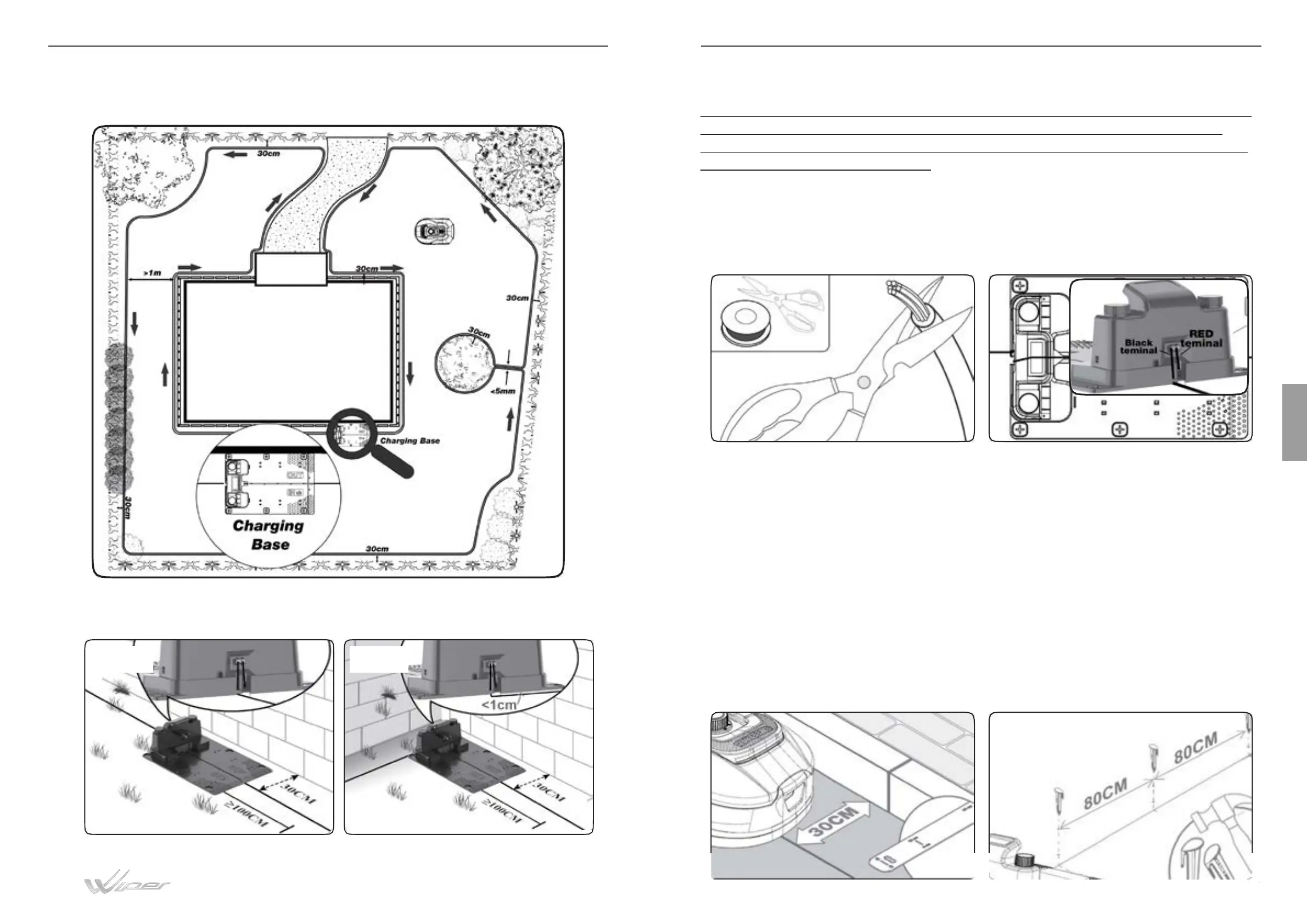 POZNÁMKA: Hraniční vodič před nabíjecí základnou by měl být v délce 1 m rovný bez