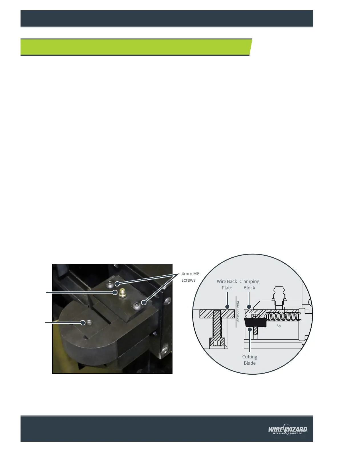 The wire back plate may be flipped by removing the screw on the bottom of the cutter with a 5 mm wrench. Replacement