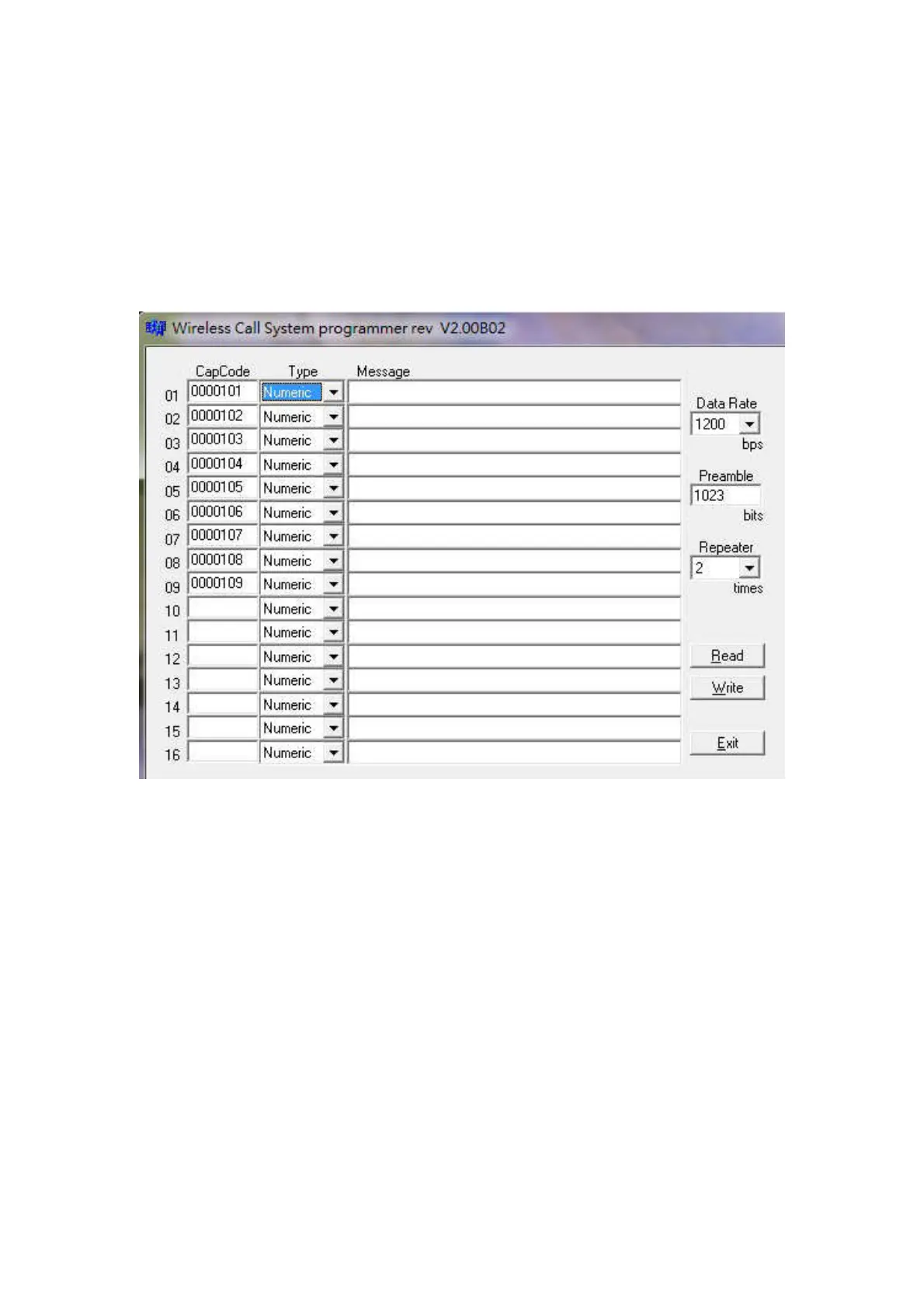 For W-9 unit, please just enter the Pager No.1-9 row. The rest of Pager No.10-16 will not work