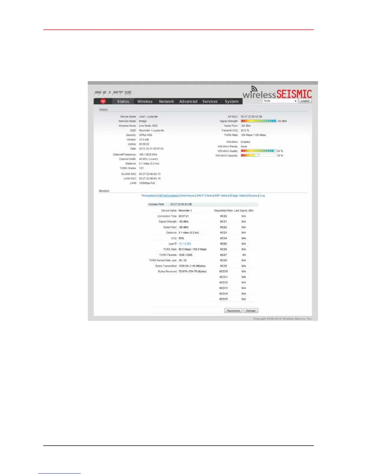 Figure 5–21 Bullet Radio Status Tab