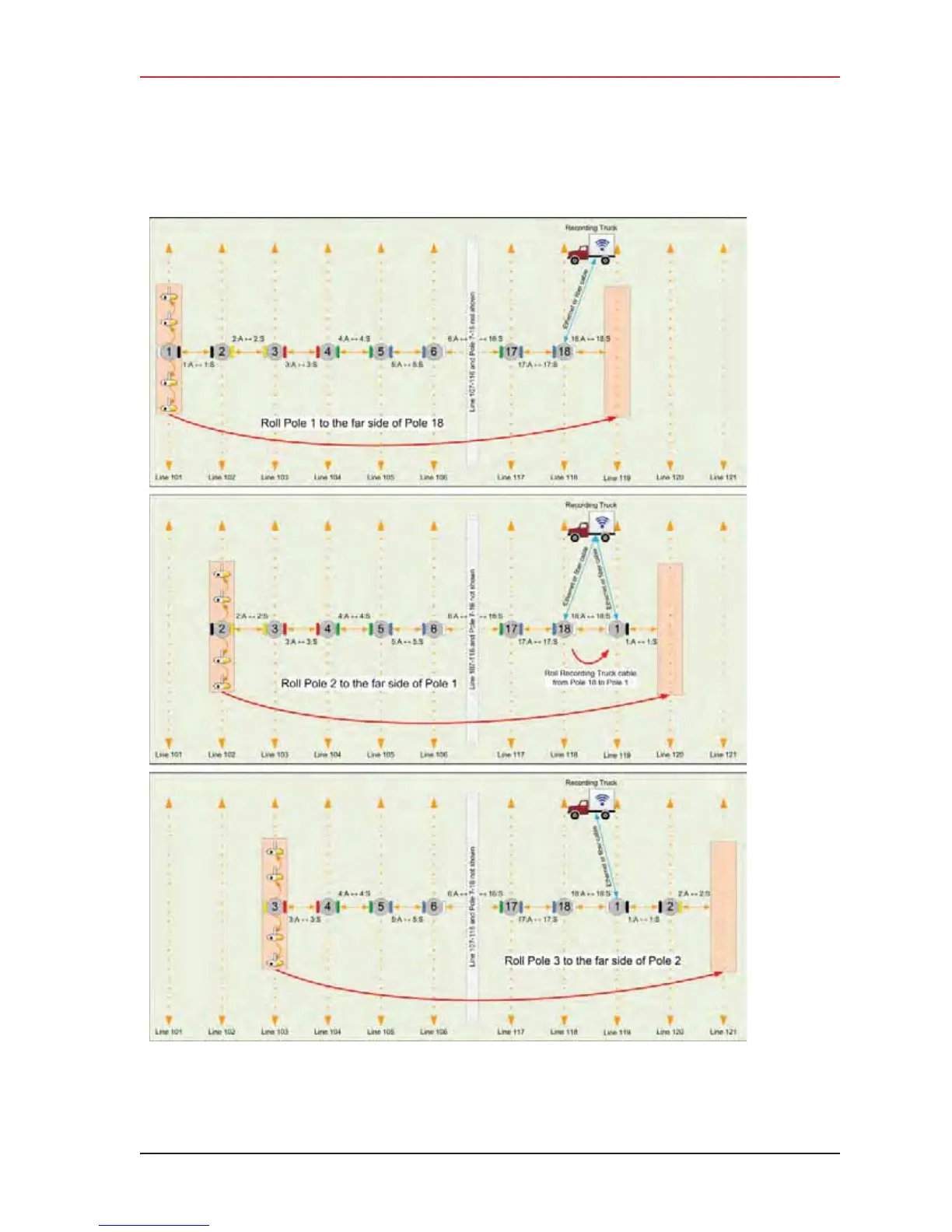 wireless Seismic RT System 2 - Figure 4-22 Rolling the Poles Example for 18 Total Poles