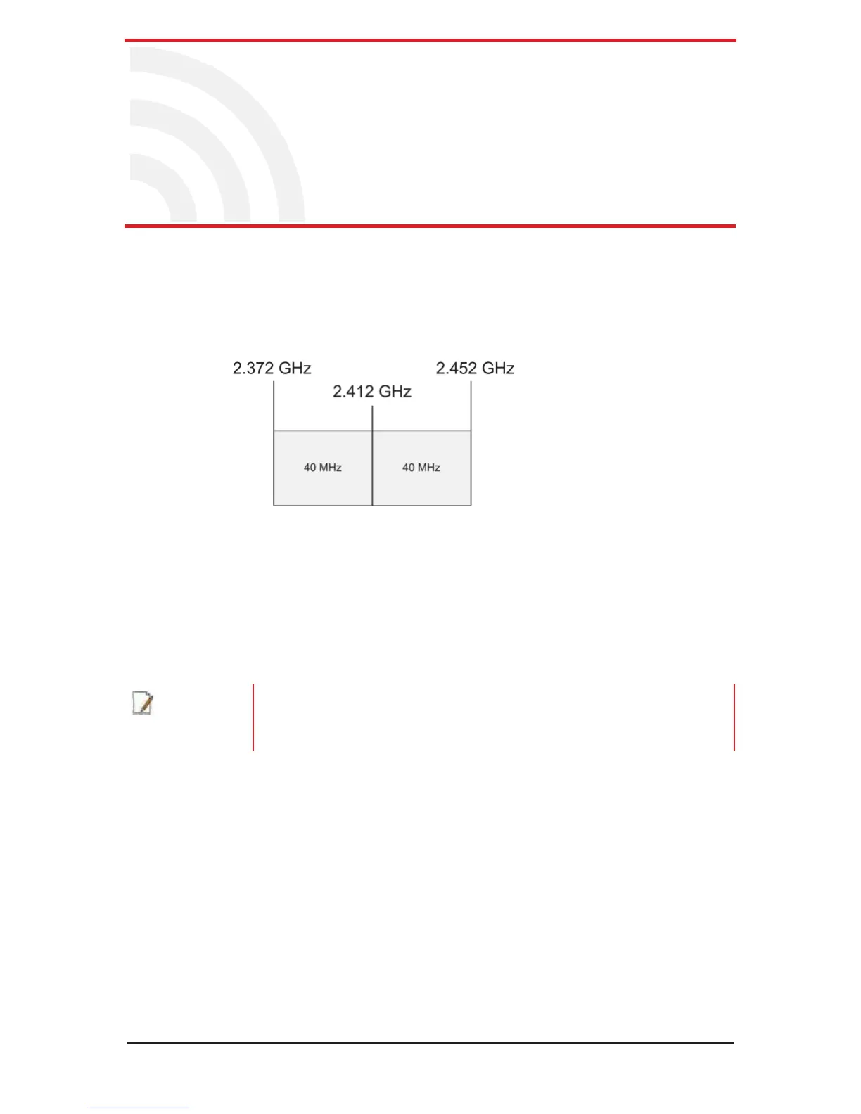 is 2.412 GHz, and the frequency band is 80 MHz wide, there are 40 MHz on either side
