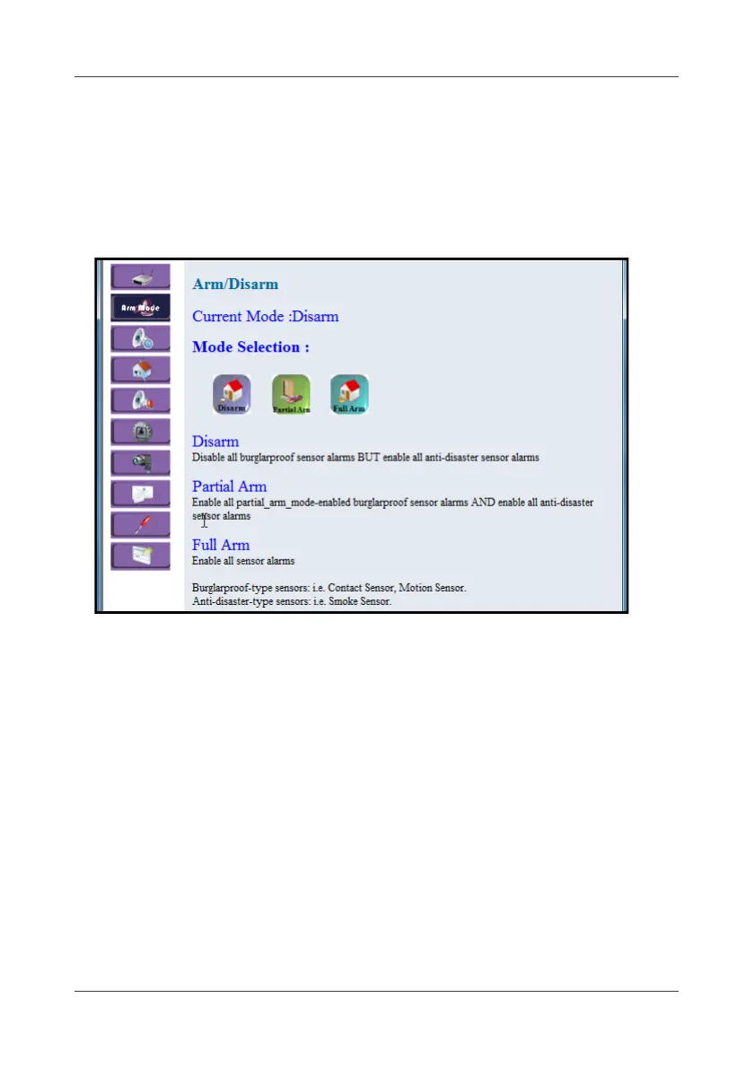 3. Select the desired alarm mode (Disarm/Partial Arm/Full Arm).