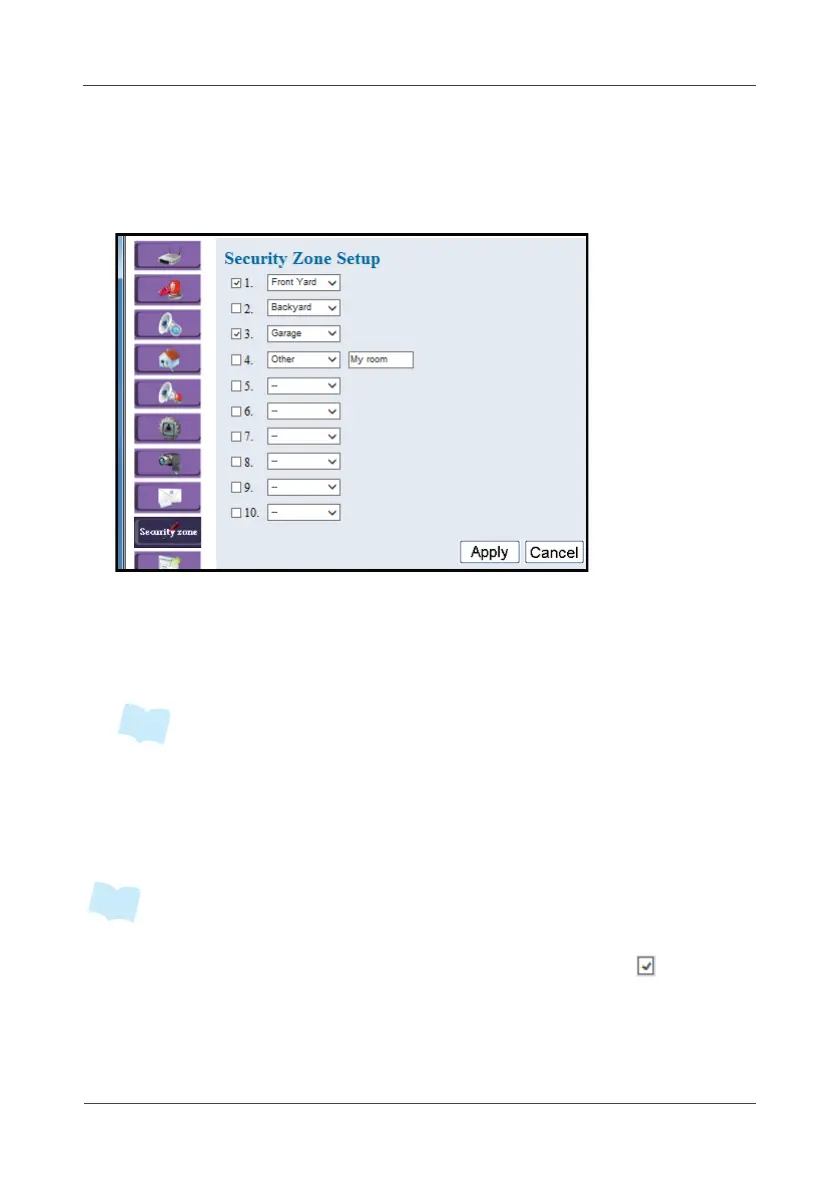 “security zone” at sensor’s setup page. Once you check the box ( ) of the