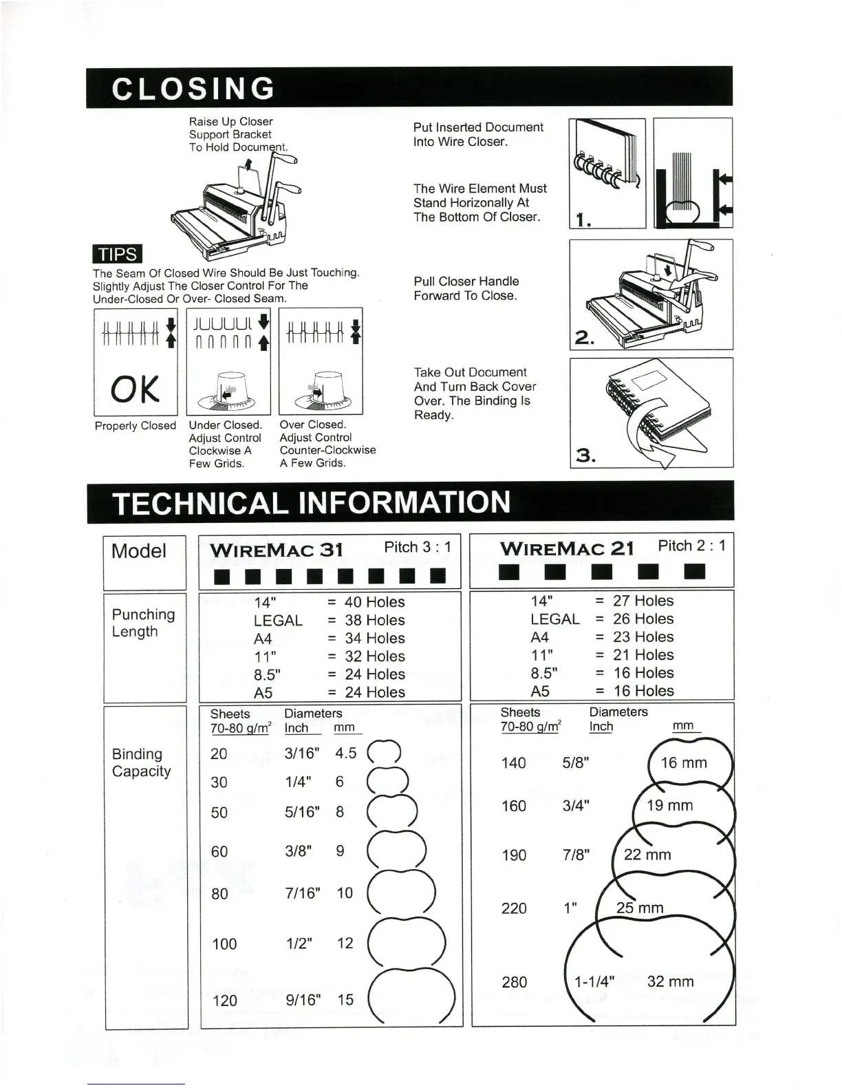 WireMac 31 - Closing the Wire Binding; Technical Specifications