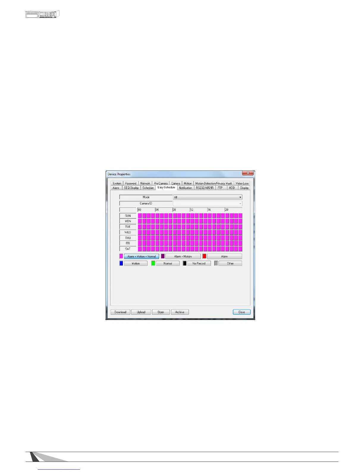 The Easy Schedule Record Setup allows the administrator to visually dene when and how video (and audio)