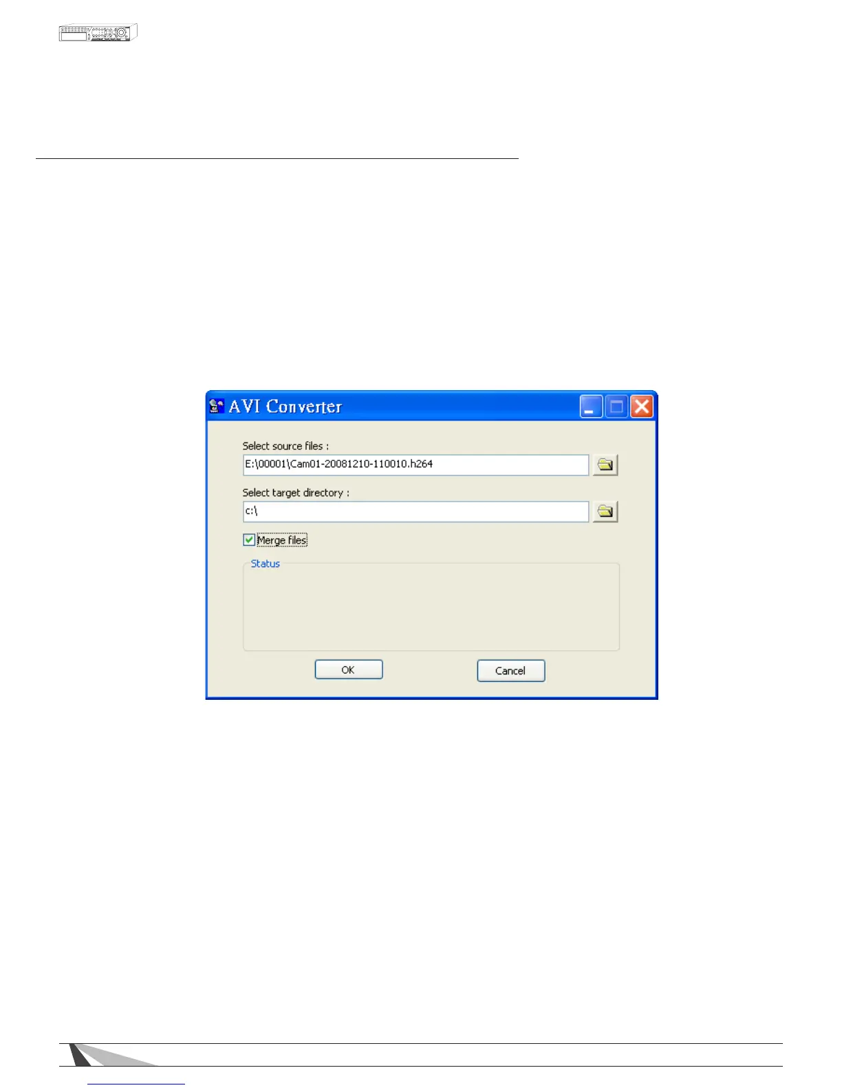 2. Select the source les (.h.264 les archived from the DVR) to be converted. Select the target directory