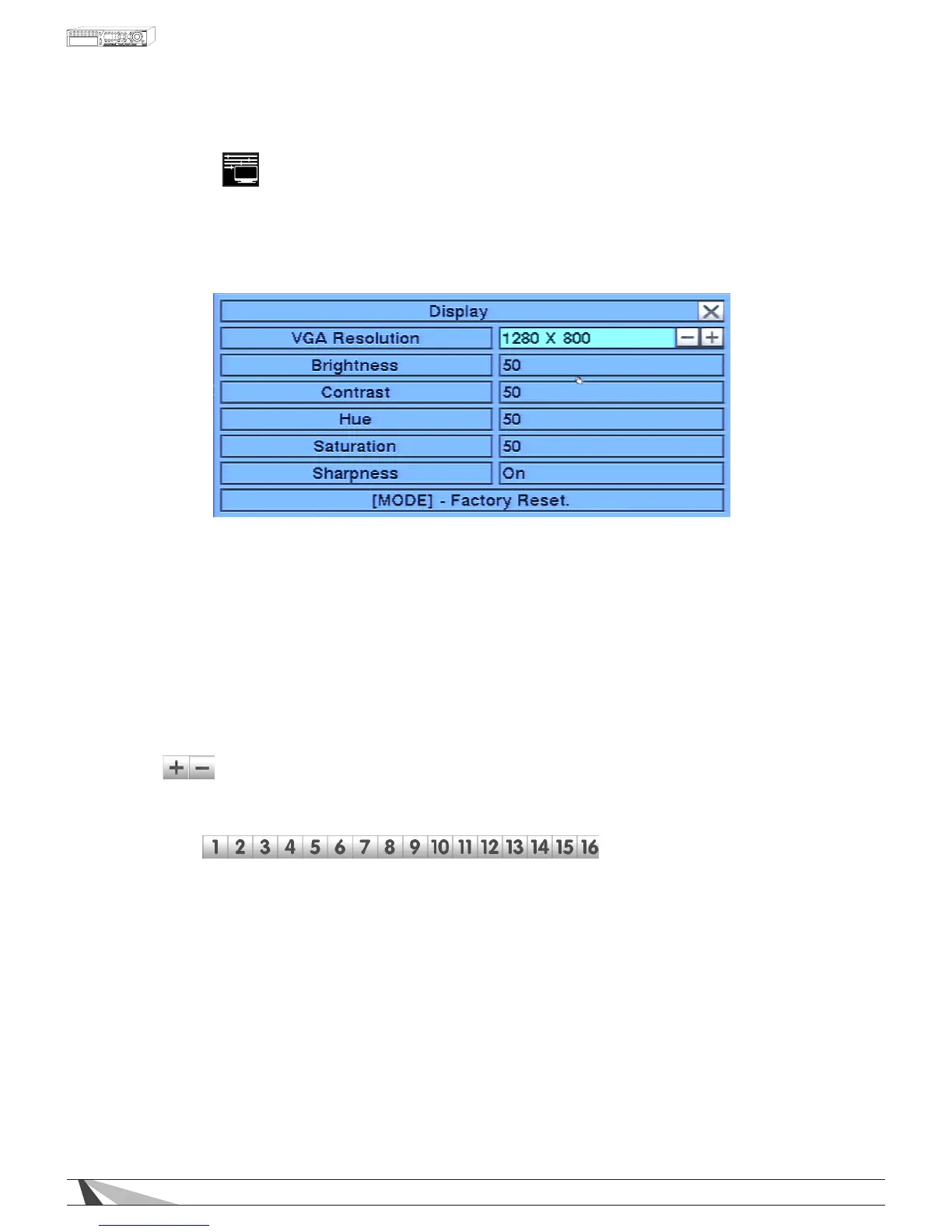 Display and then press ENTER to display the menu as shown. Alternatively use the mouse to click on the VGA