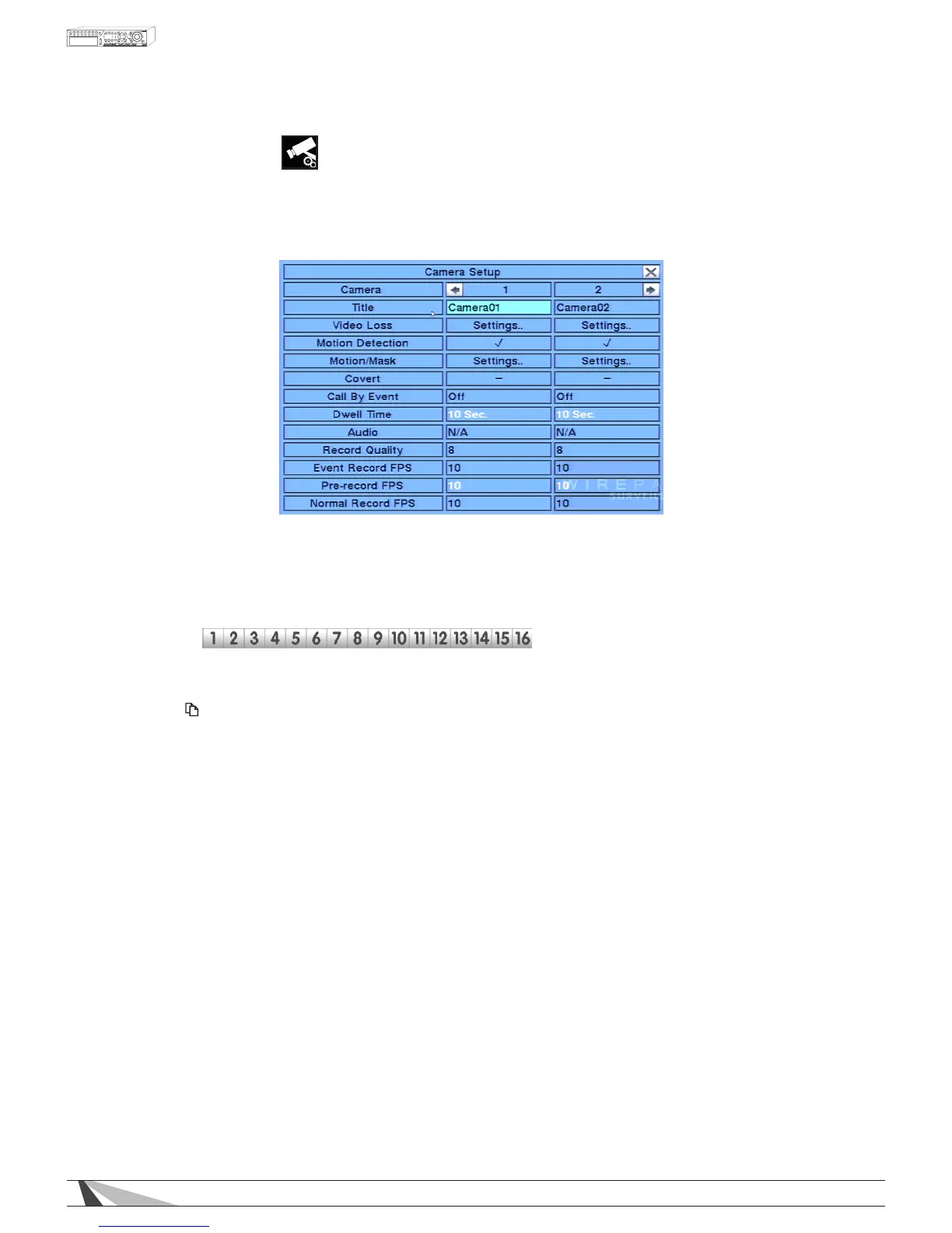 Title, Video Loss, Motion Detection and Audio) - of the focus camera to all of the cameras.