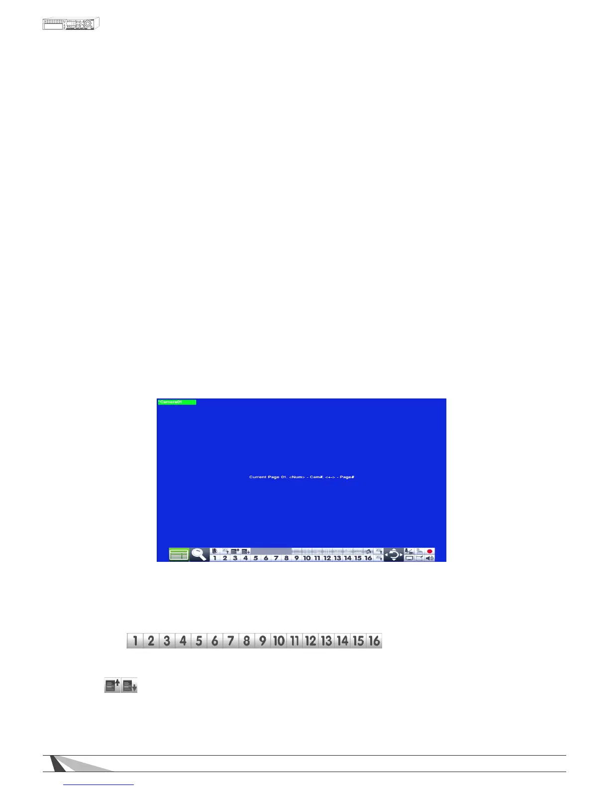 Press these buttons on the front panel of the DVR or remote control to change the current page