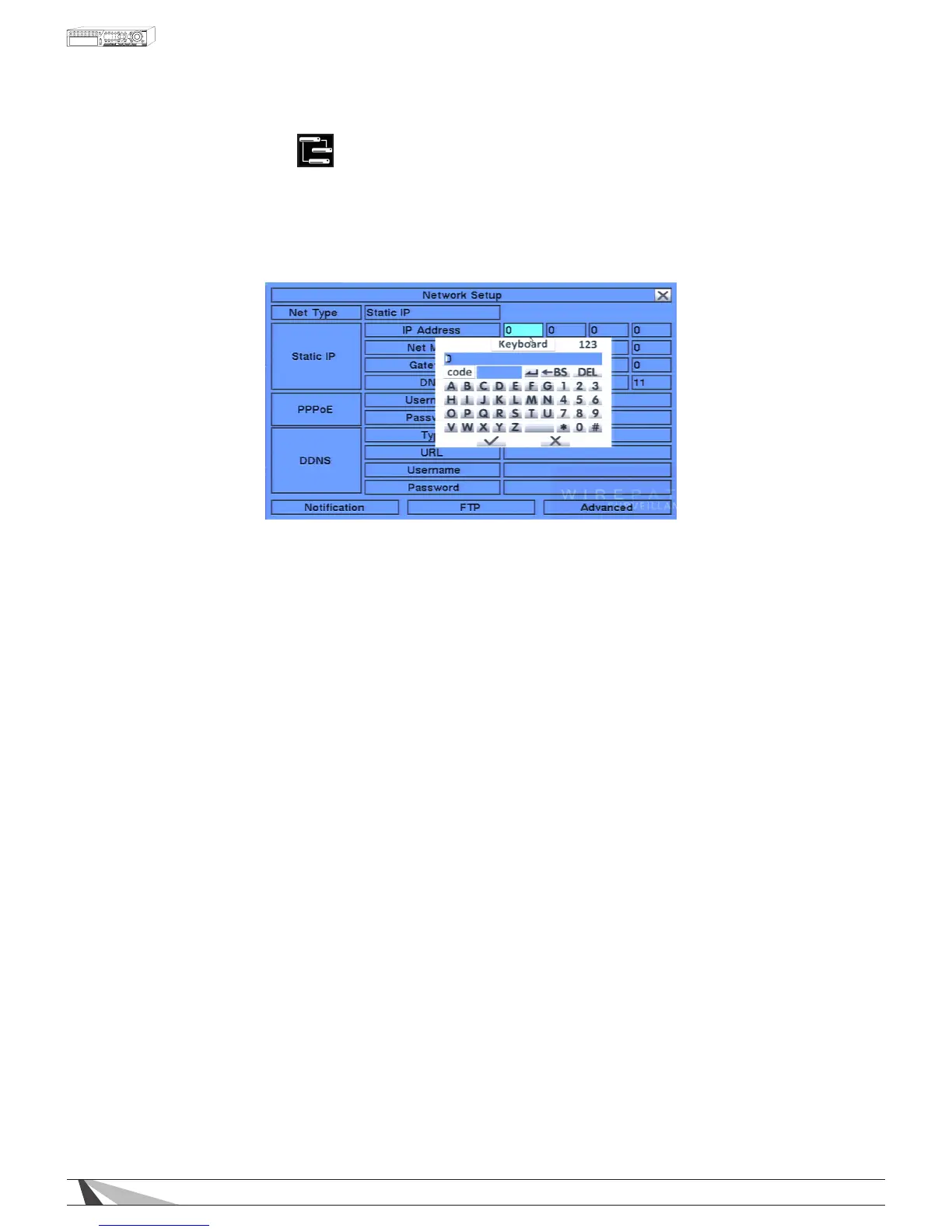 Enter an Ethernet IP Address for the DVR. This address should be static and not conict with any other IP ad