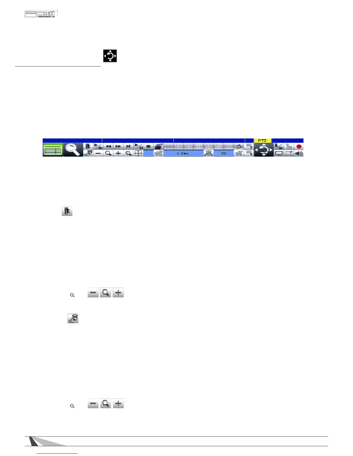 Press these buttons on the front panel of the DVR or on the remote control to pan the camera left or