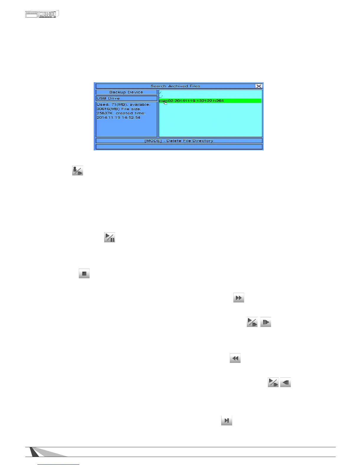 Once playing back video, use the following controls to operate and archive the video and audio: