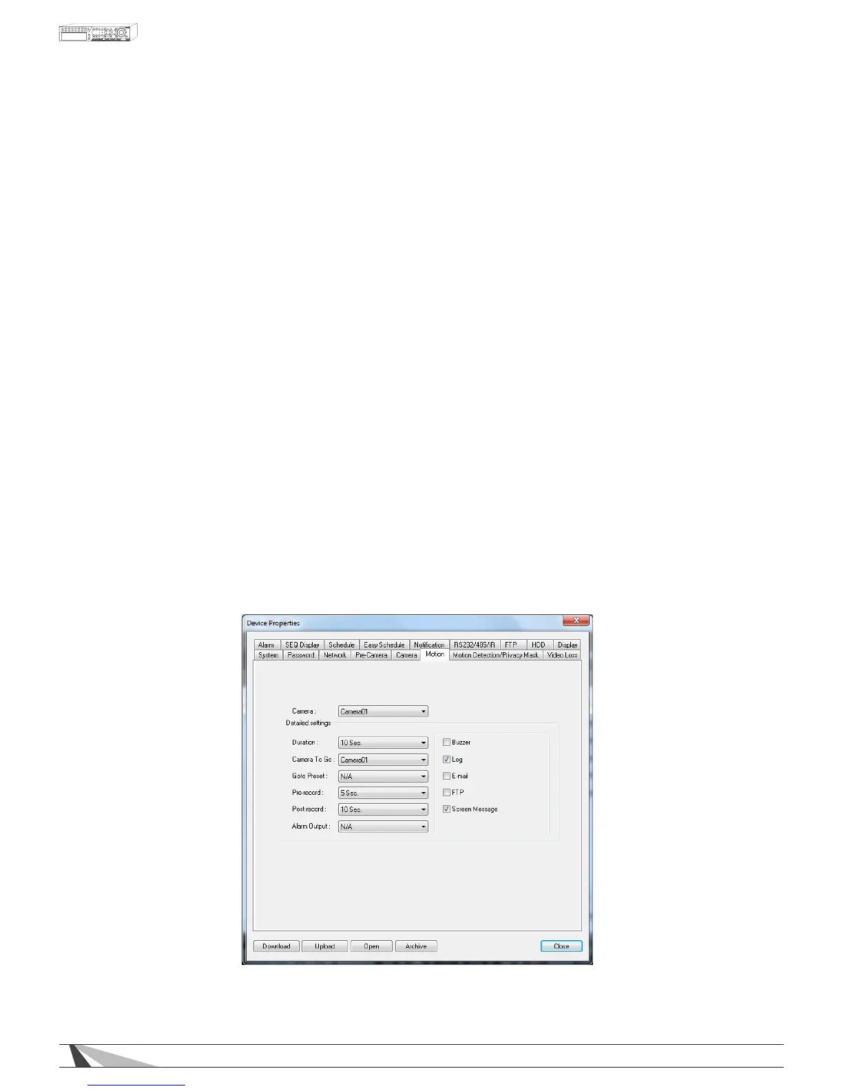 Motion Setup allows the administrator to dene how the system responds when motion is detected for