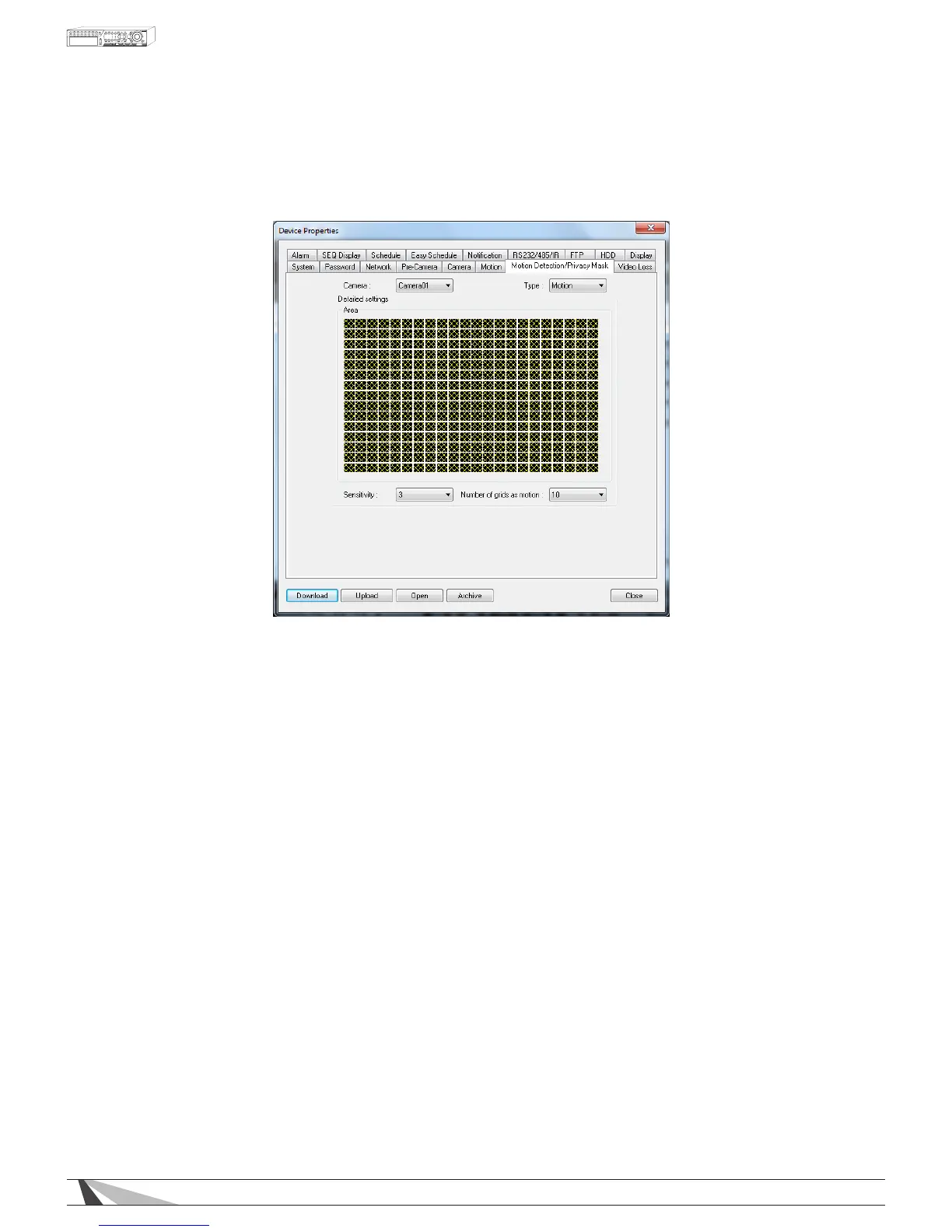 Motion detection allows administrator level users to dene how the system responds when motion is detected