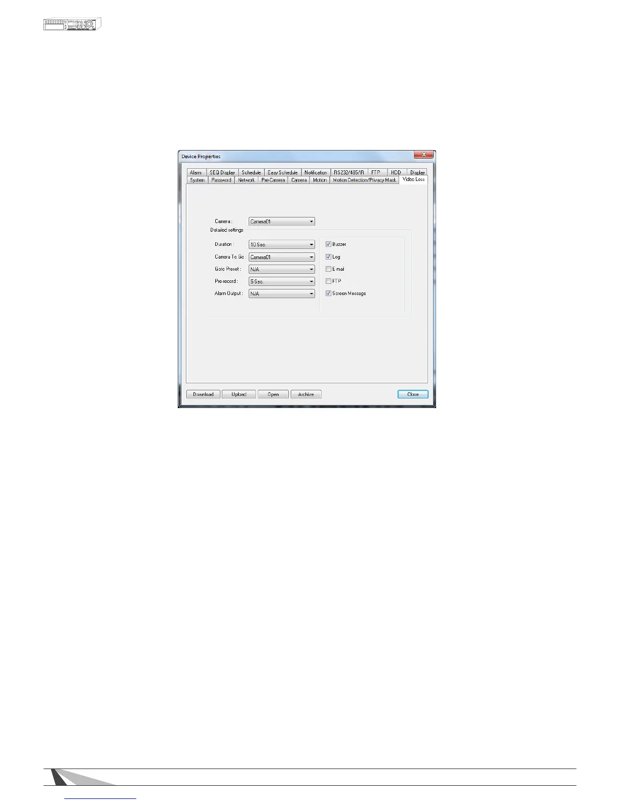 Video Loss Setup allows the administrator to dene how the system responds when video signal is lost