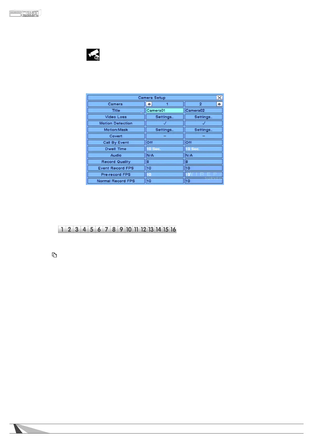 Title, Video Loss, Motion Detection and Audio) - of the focus camera to all of the cameras.