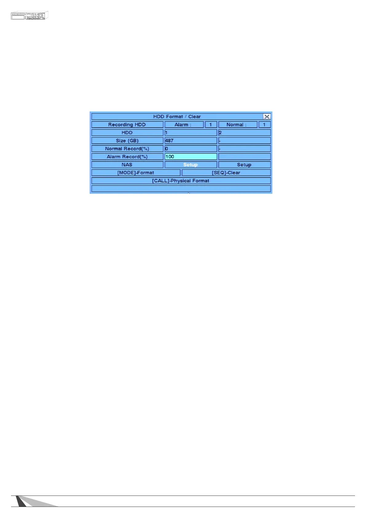 Press the Call button on the front panel of the DVR or the remote control to Physically Format the hard