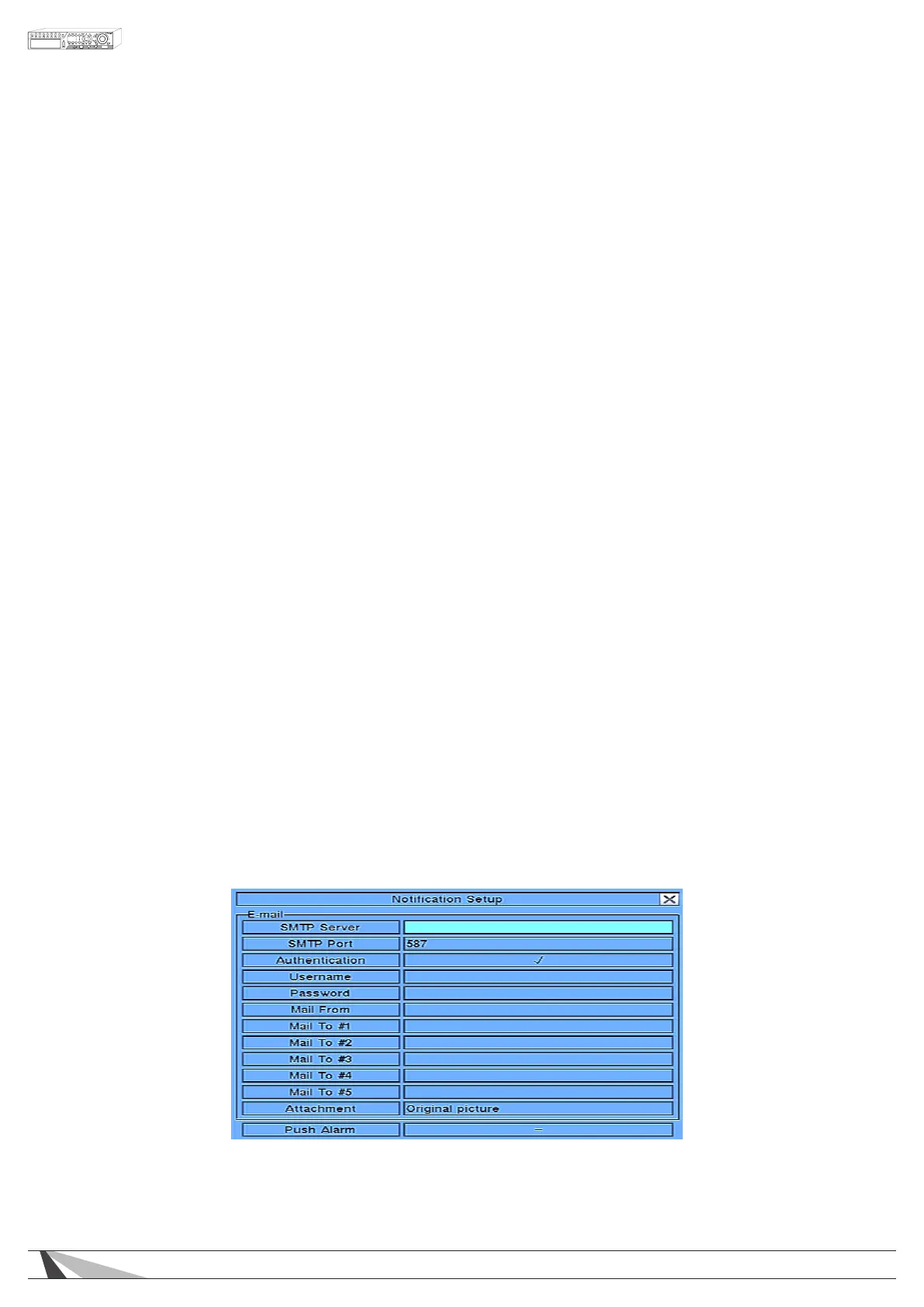 Press ENTER on the front panel of the DVR or on the remote to display the E-mail Setup menu. Alternatively