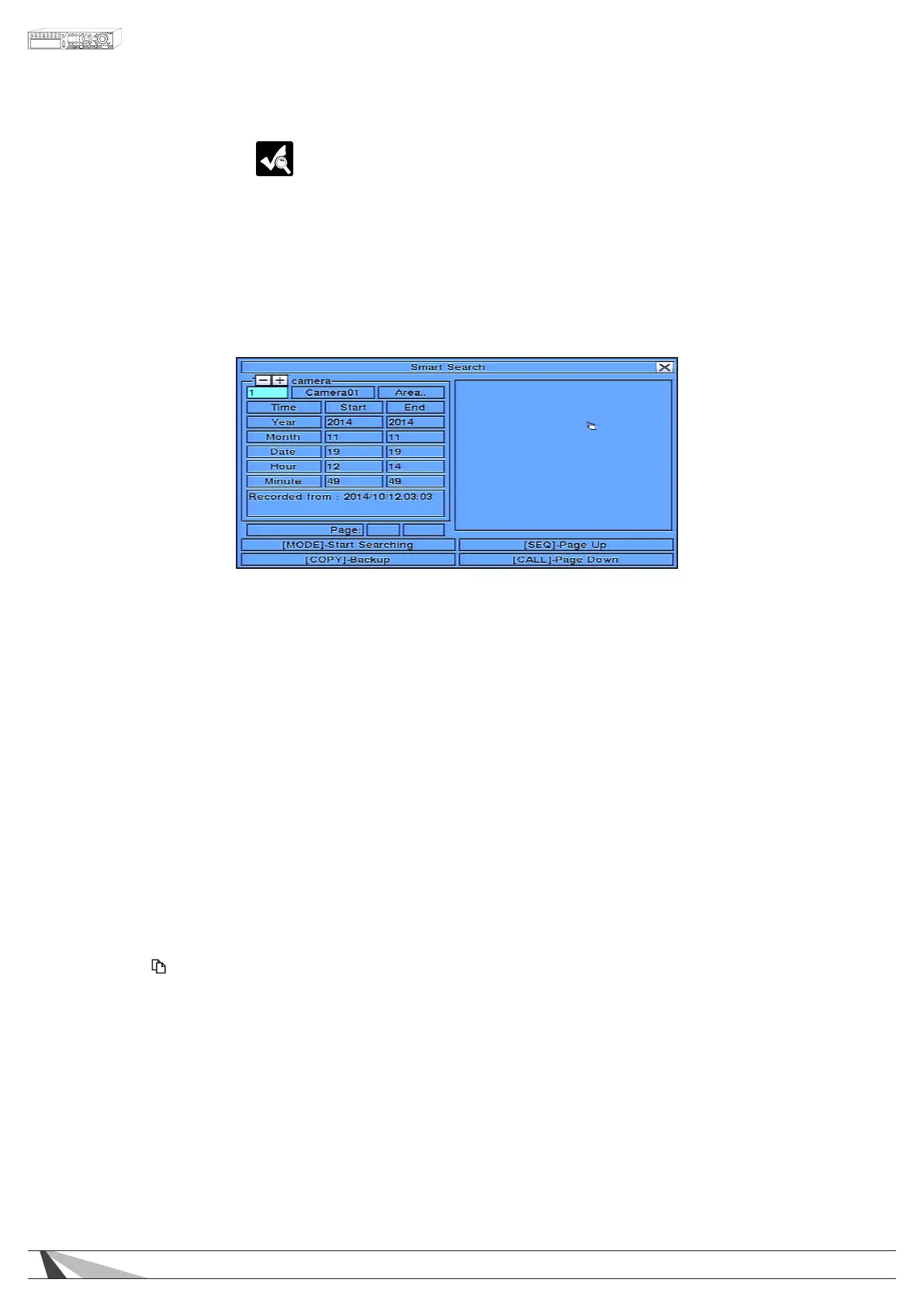 The Smart Search feature allows the user to search for motion in a specic area of a video (camera) window.