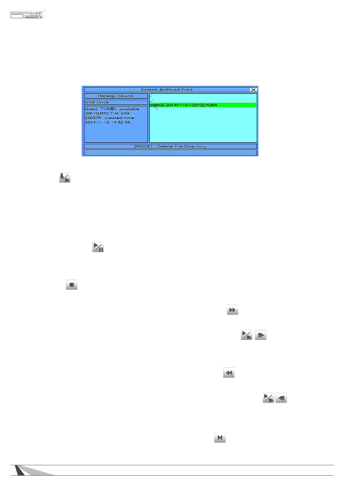 Once playing back video, use the following controls to operate and archive the video and audio: