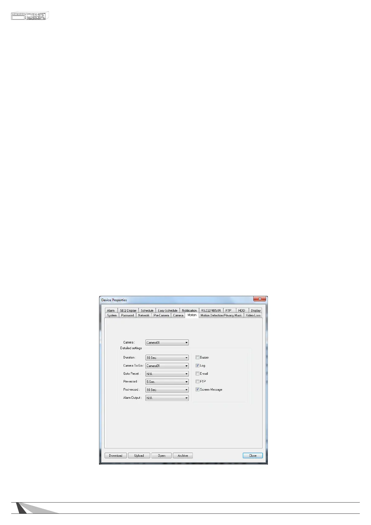 Motion Setup allows the administrator to dene how the system responds when motion is detected for