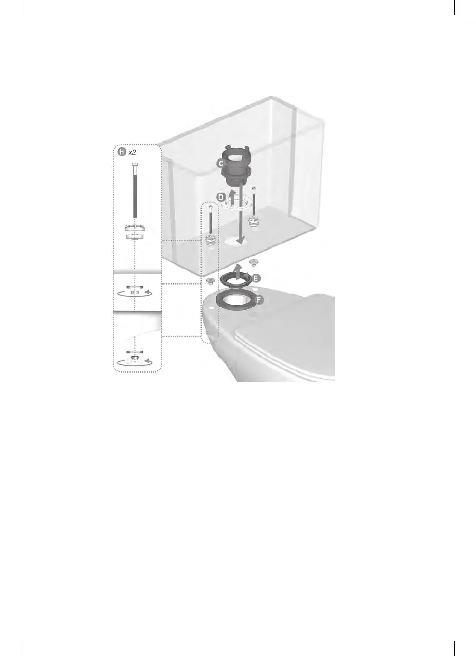8 - Fit close coupling washer (item F) to threaded tail of base.