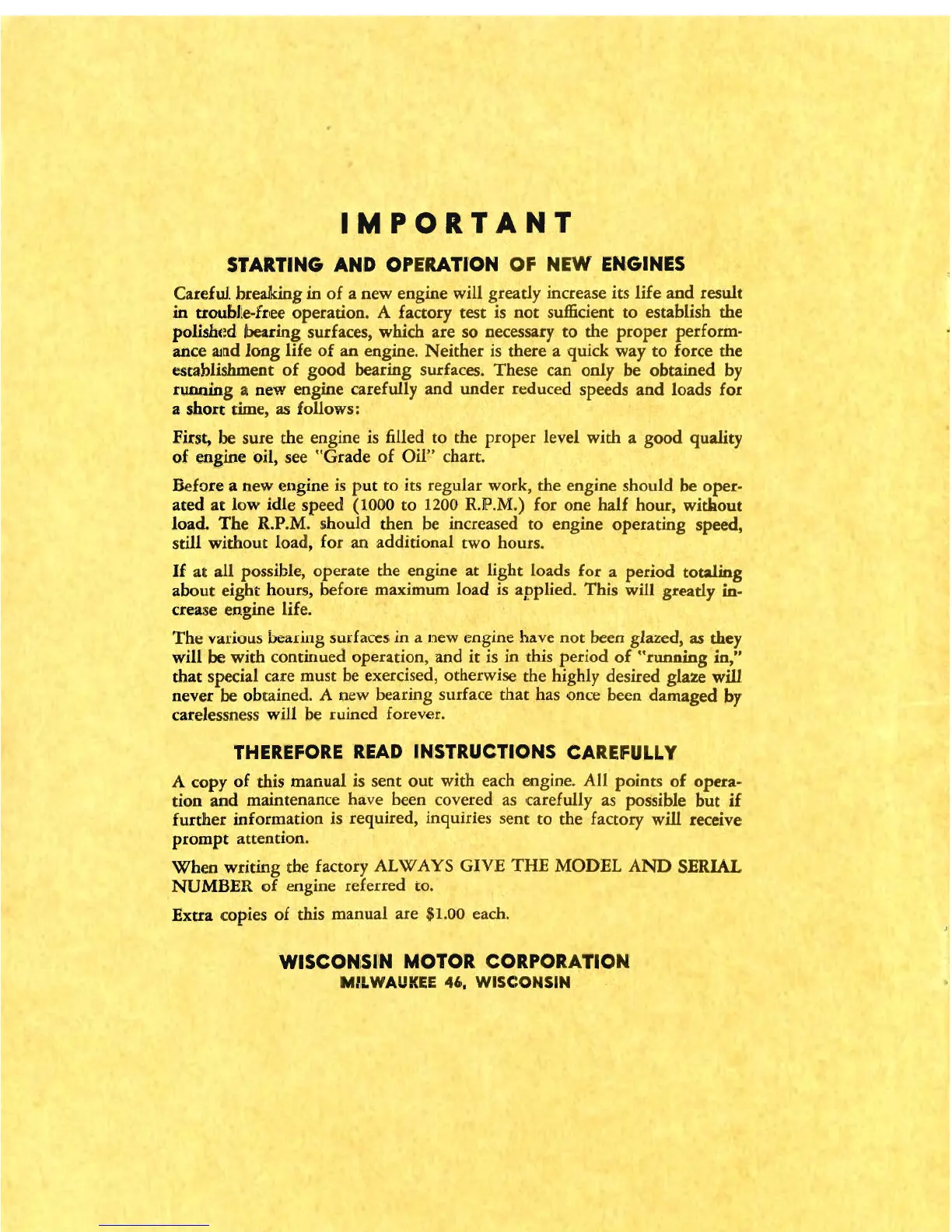 Wisconsin TH - Engine Overview and Initial Operation; Starting and Operating New Engines