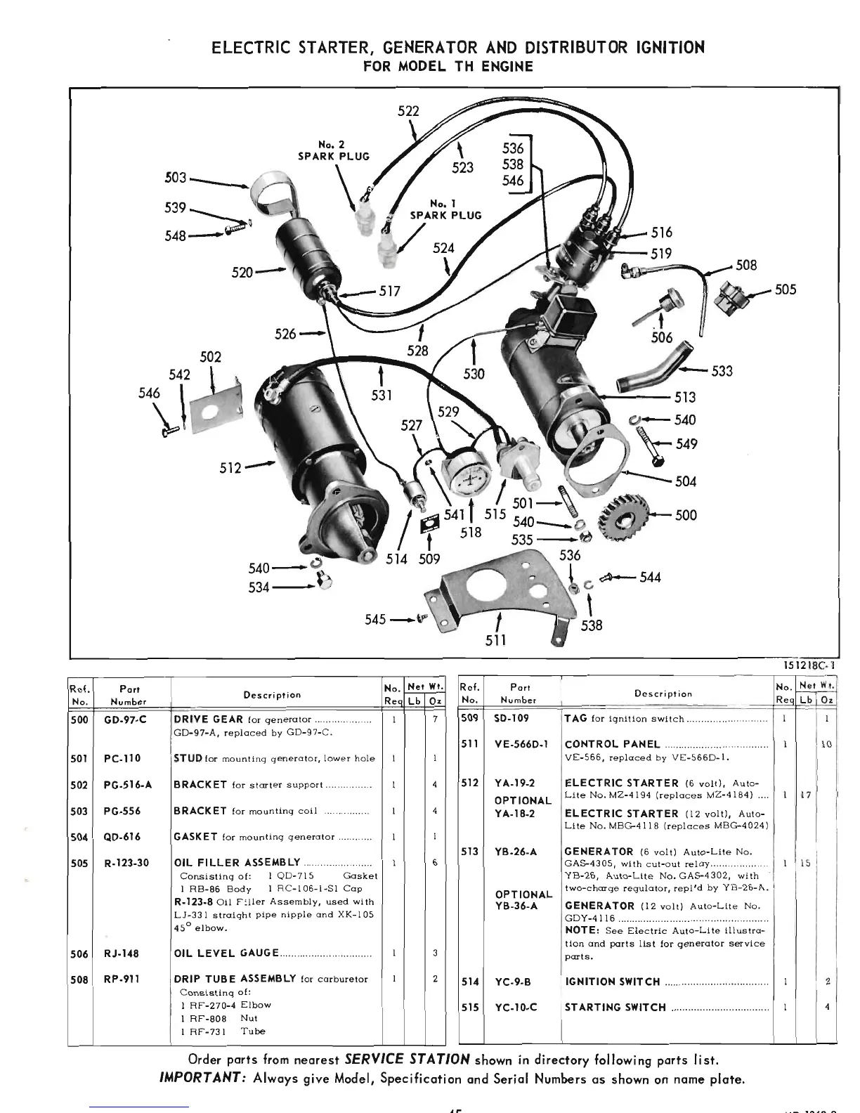 Wisconsin TH - Electric Starter, Generator and Distributor Ignition