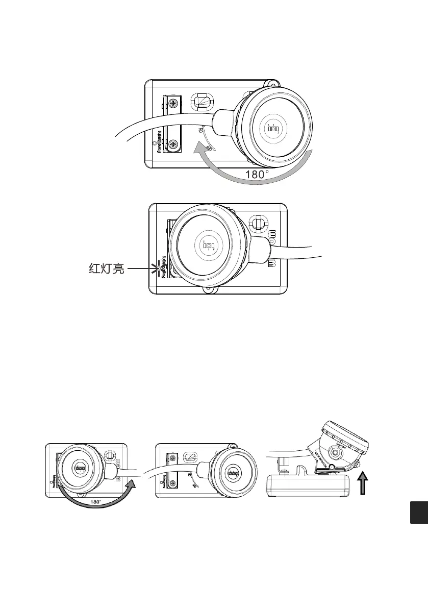 把灯头顺时针转动 180 度,确保灯头的正极触点和充电器的正极弹片紧密接触。此时充电器的指示