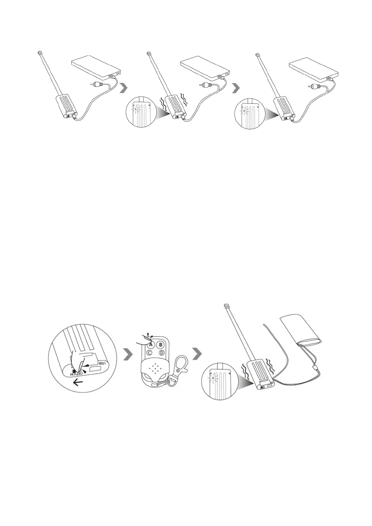 4.2.1 電源スイッチを「ONの位置にスライドさせてから、リモコンのボタン A 1 回押し