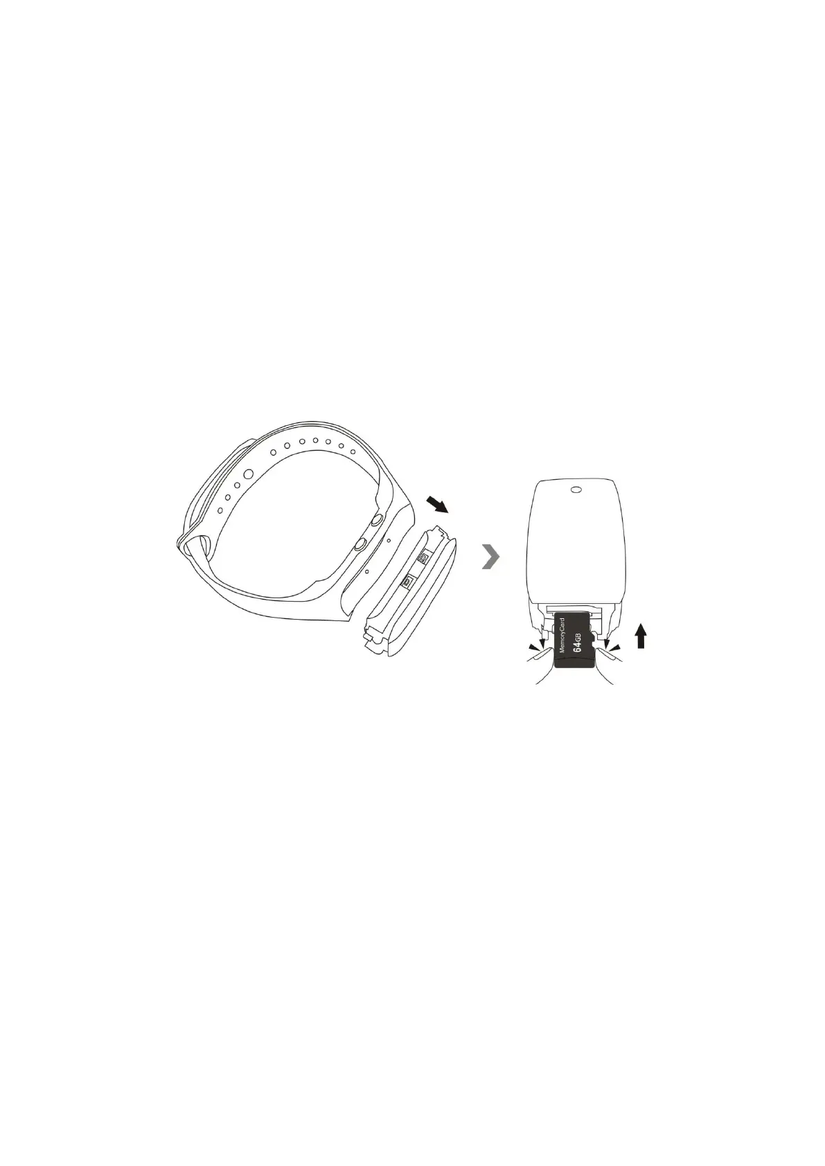 3.1 Retirez le manchon du bracelet en silicone pour révéler le corps de l'caméra, puis insérez une