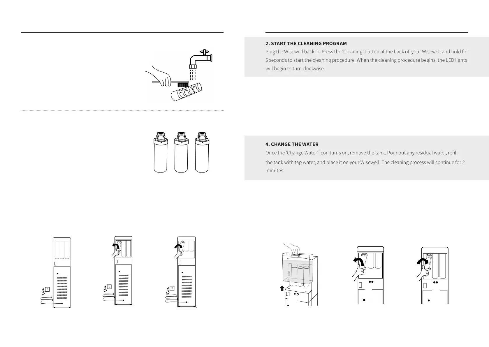 the tank with tap water, and place it on your Wisewell. The cleaning process will continue for 2