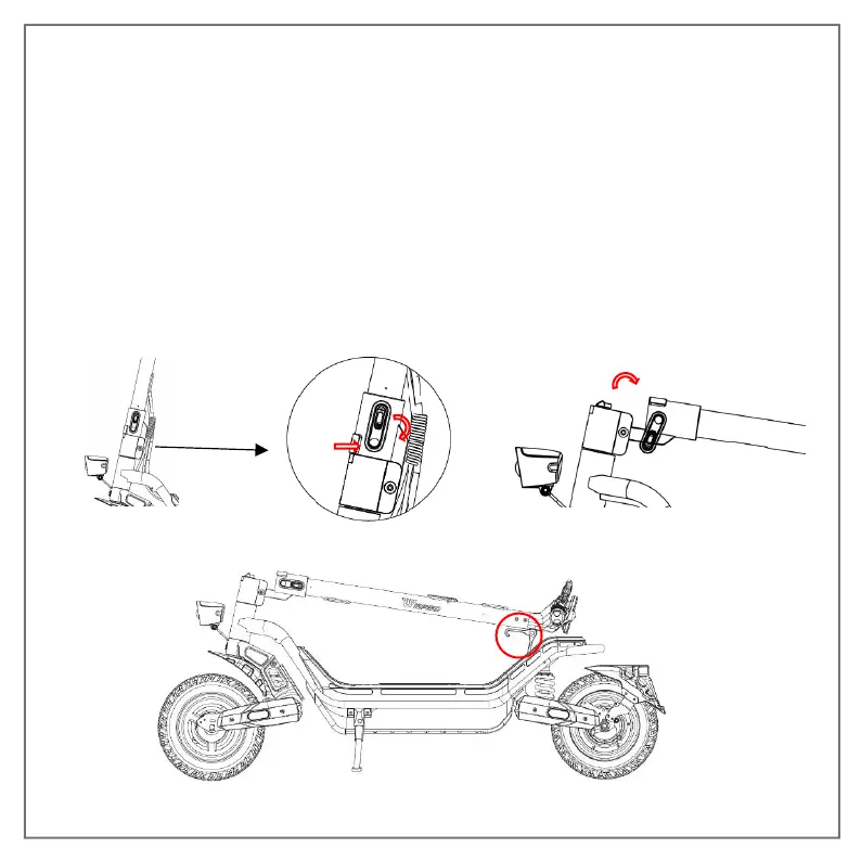 Press the gray lever (A) while turning the swivel mechanism clockwise (B).