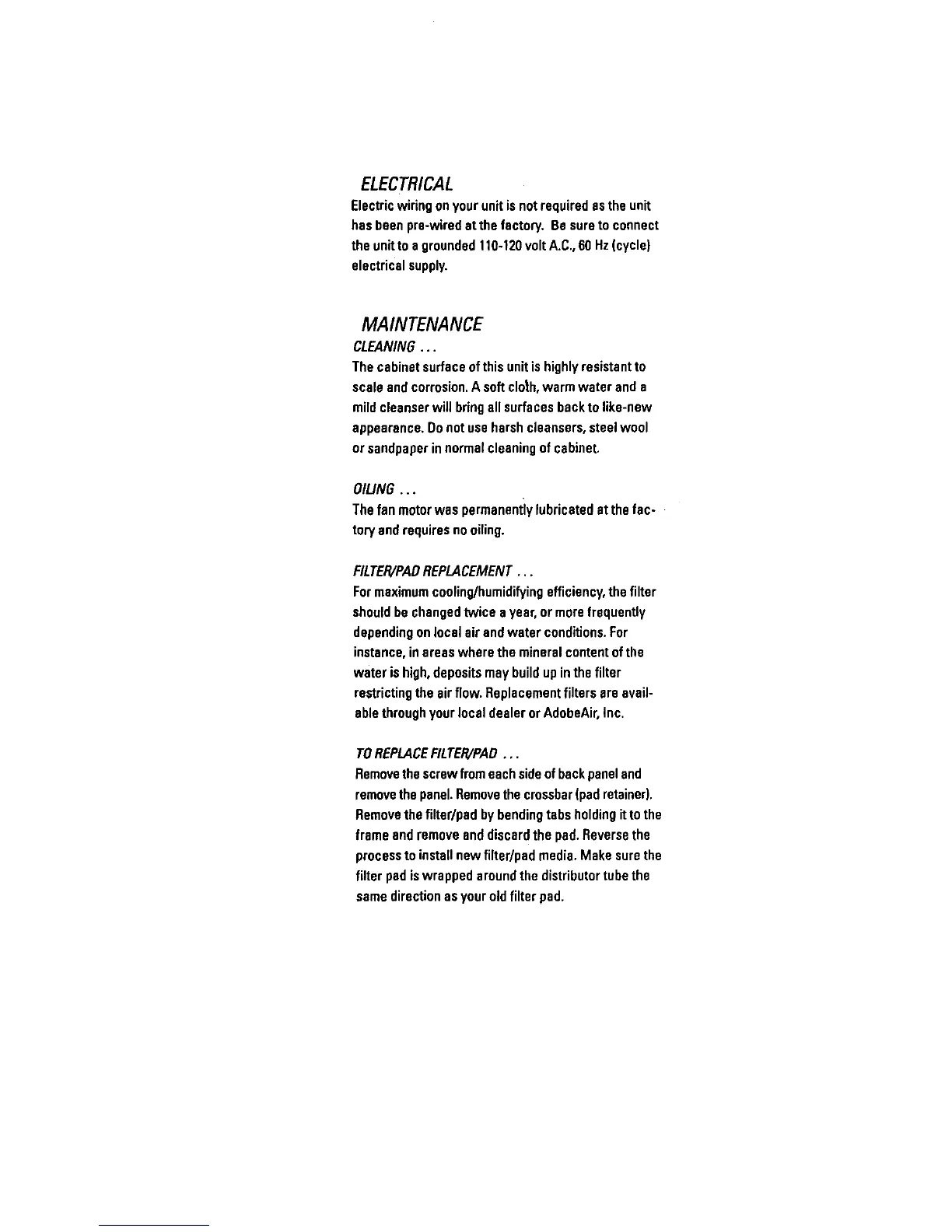 processtoinstallnewfilter/pad media.Make surethe