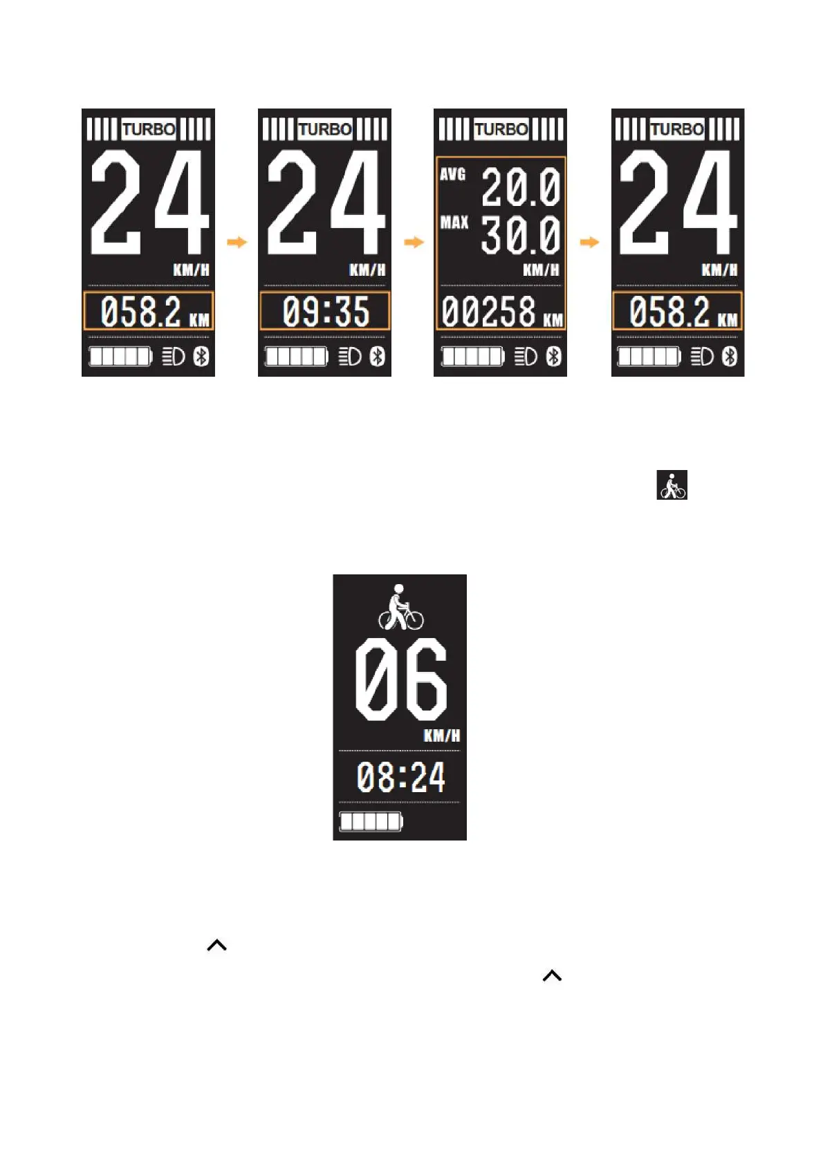 Hold the down arrow for 2 seconds, the bike will enter the walk assist mode. When is shown