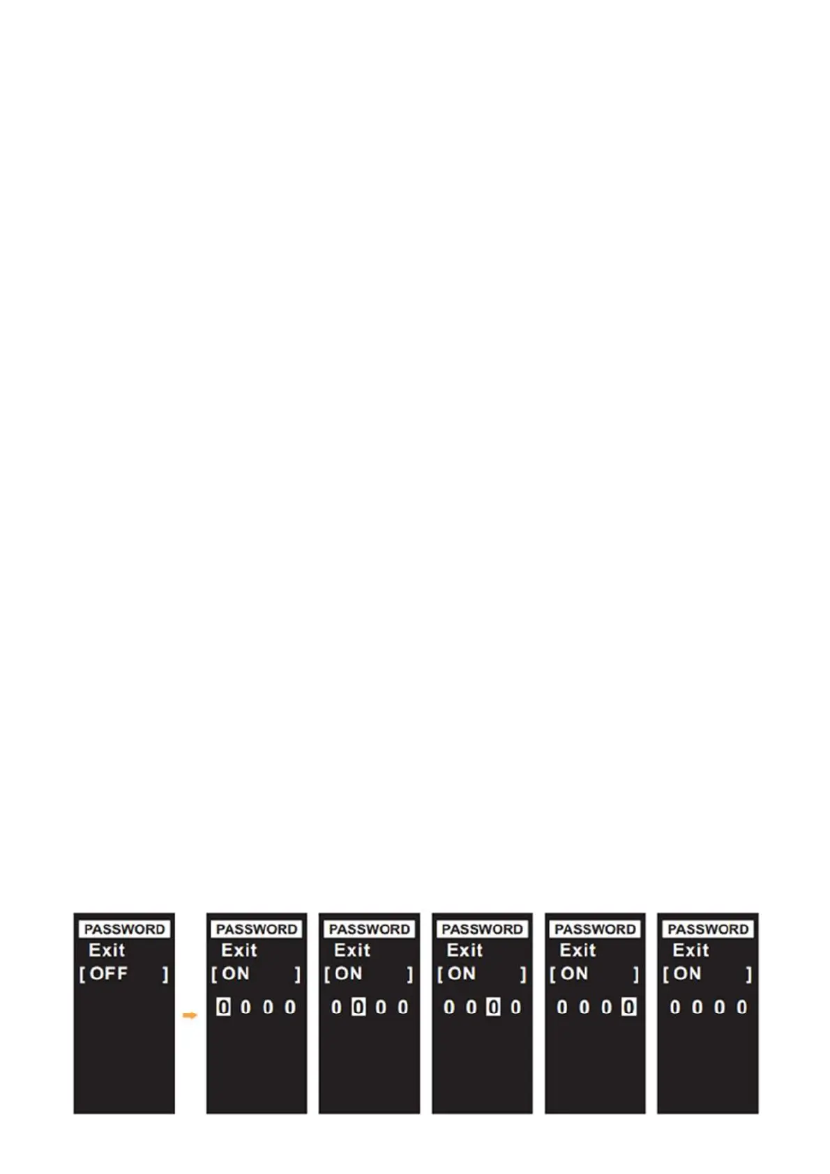 Enter on/off password setting, press the up and down arrows to OFF/ON item, Briefly press M to select