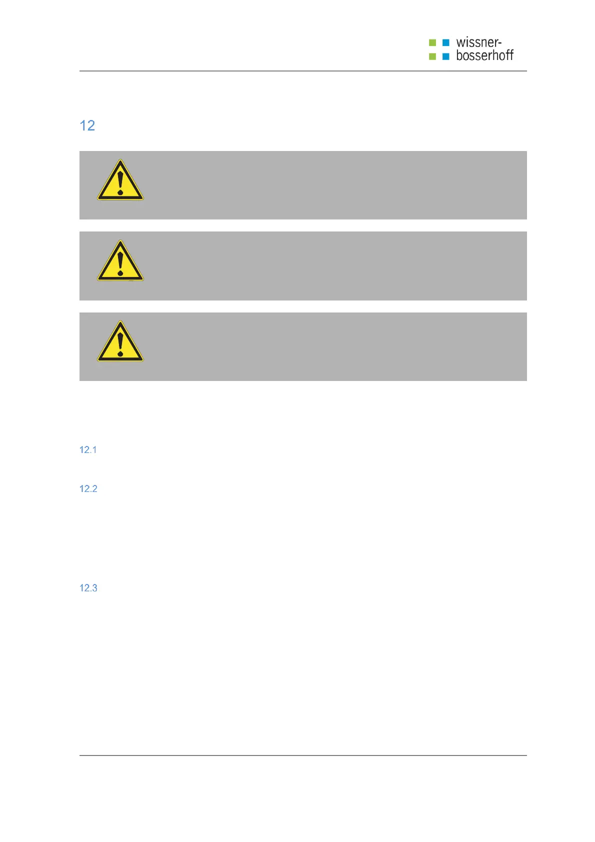 Ensure that the following maintenance work is performed every 12 months by the manufacturer or by a