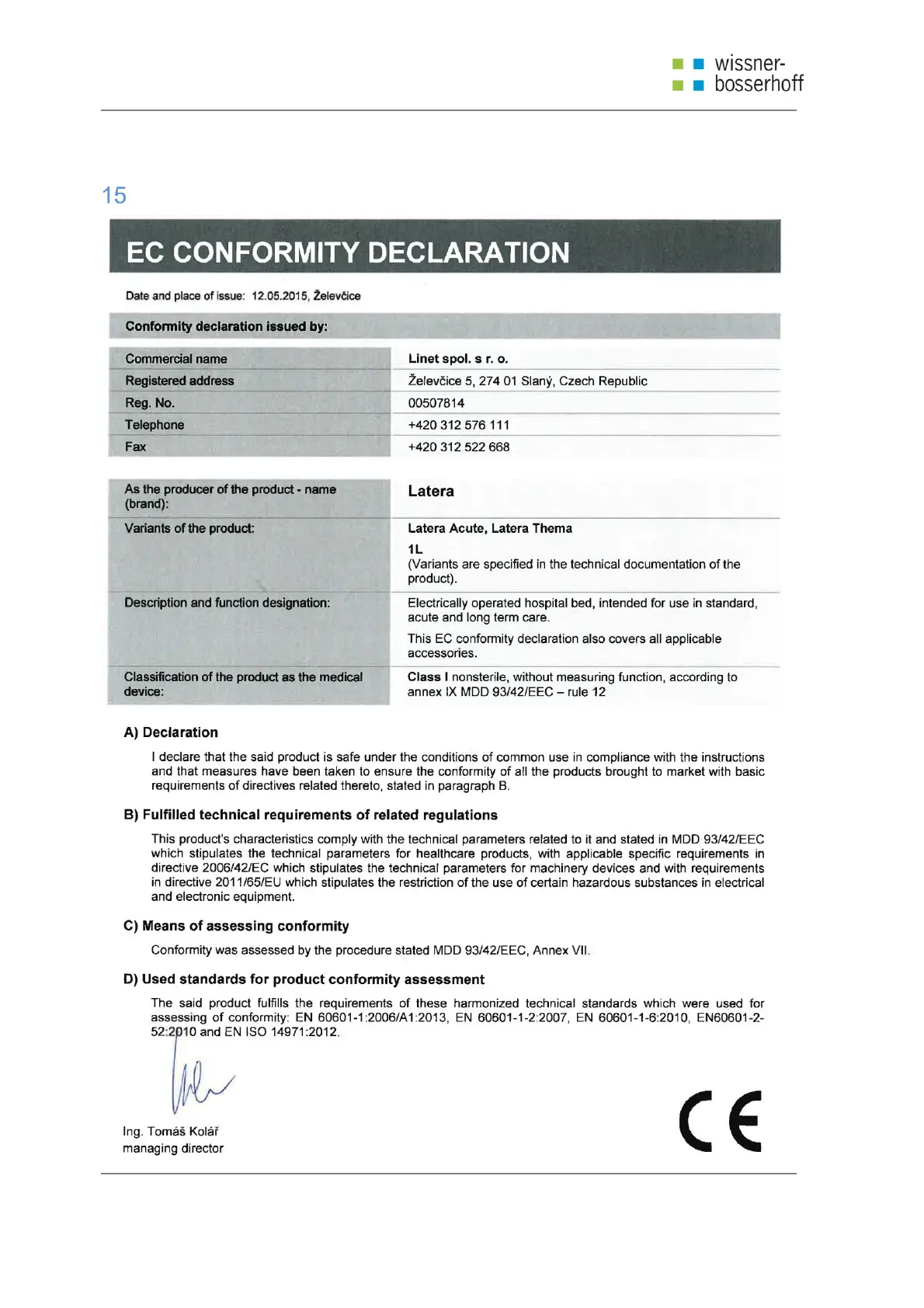 Wissner-Bosserhoff Latera - EC Declaration of Conformity