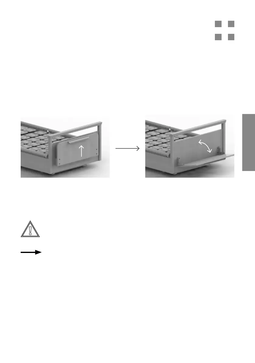 ▪ Um die Bettzeugablage zu öffnen, fassen Sie sie oben an, ziehen sie hoch und klappen sie