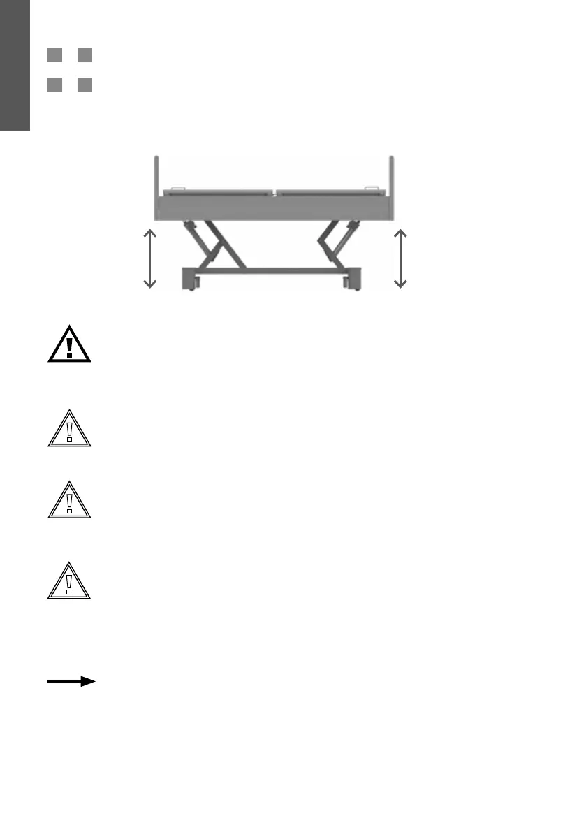 Vergewissern Sie sich vor jeder Höhenverstellung des Bettes, dass sich keine