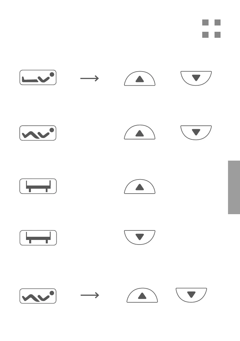 Druk eerst op de toets voor de rugleuning en houd dan tegelijkertijd de omhoog- en omlaag-to-