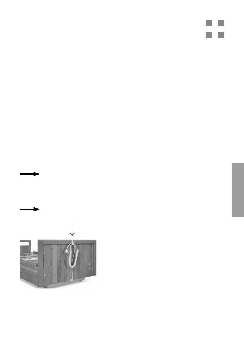 De kabel moet bij elke beweging van het bed kunnen volgen. Overtollige kabel moet