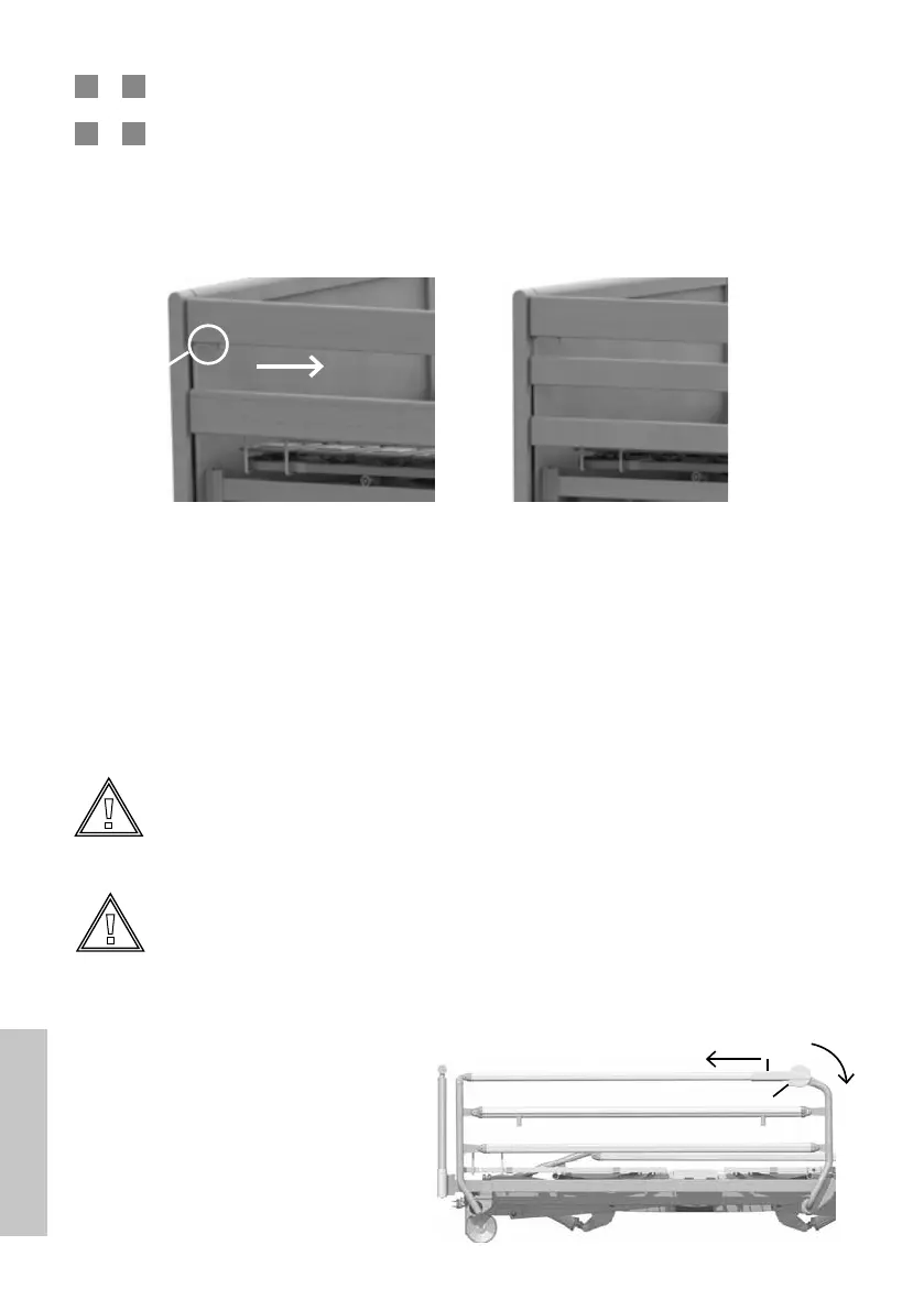 ▪ Elevar la barandilla lateral en el botón liberador y empujarla y mantenerla en la dirección
