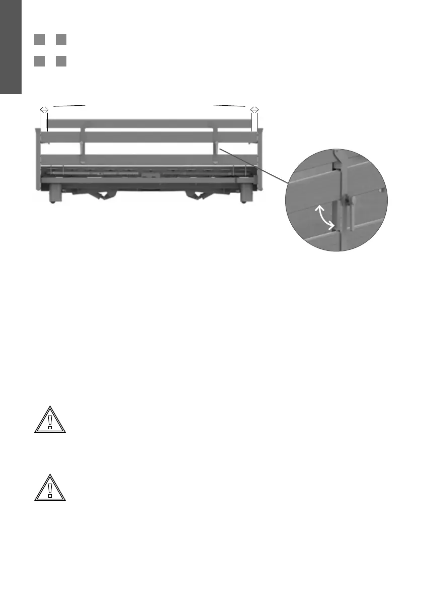 ▪ Seitengitteraufsatz wie in Abb. auf das Seitengitter des Pegebettes setzen.