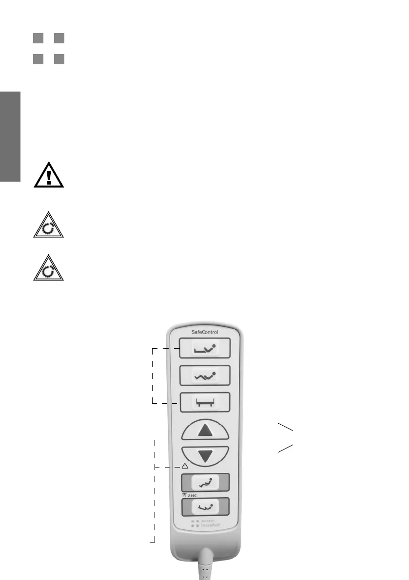 The handset of the nursing home beds has a rst-fault safety feature. This means that adjus-